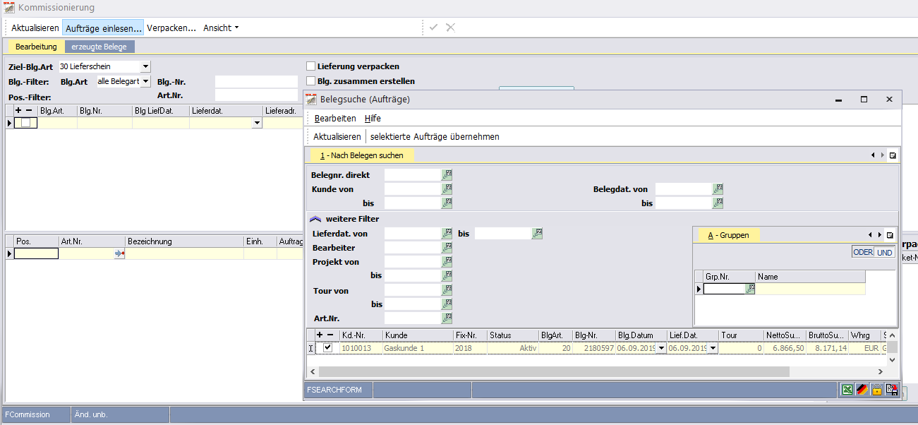 Über das Modul "Kommissionierung" im Lagerwesen, können vorhandene Kunden-Aufträge einzeln oder im Stapel zu Lieferscheinen oder Rechnungen